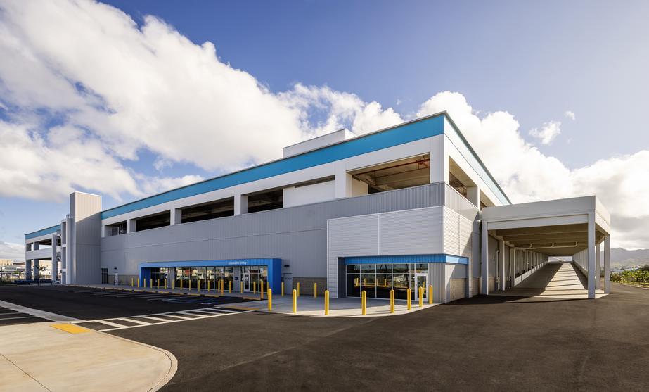 The new Amazon last-mile distribution center, located in O‘ahu’s port and industrial area, spans over 750,000 square feet. This facility receives packages by truck, sorts them in the warehouse, and loads them into vans for final delivery. It features a state-of-the-art delivery station on the first floor, with 700 parking stalls across two additional levels. The center can accommodate 500 employees and 250 truck drivers. Designed to meet the demands of ecommerce and urban logistics, it addresses O‘ahu’s limited construction footprint while providing efficient service in the island’s unique spatial environment.