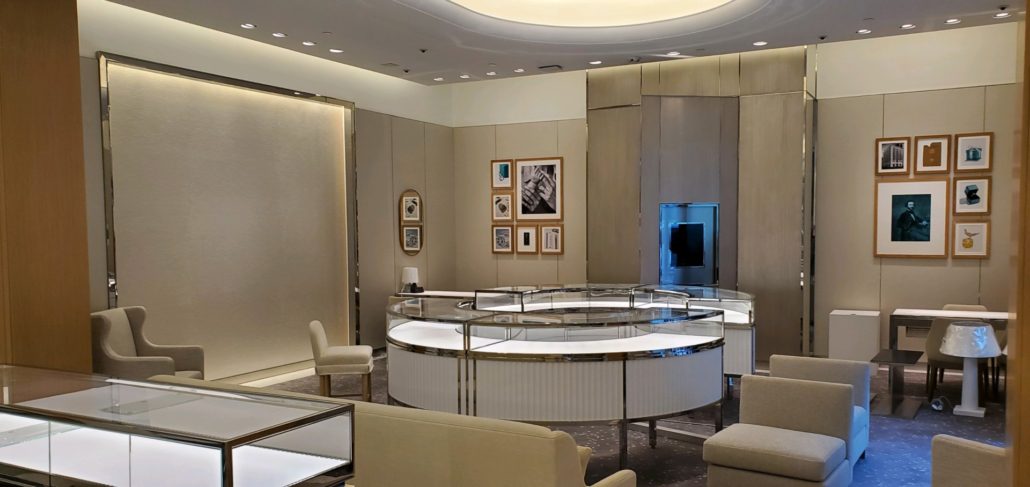 Plano Texas was selected as a flagship location due to the rapid population growth in North Texas. Tiffany & Co. stands out in Legacy West as the only luxury jeweler in the area. Surrounded by a glass facade that shows the sparkling diamonds inside, the store is lit with natural light and filled with display cases showing off Tiffany’s latest designs.