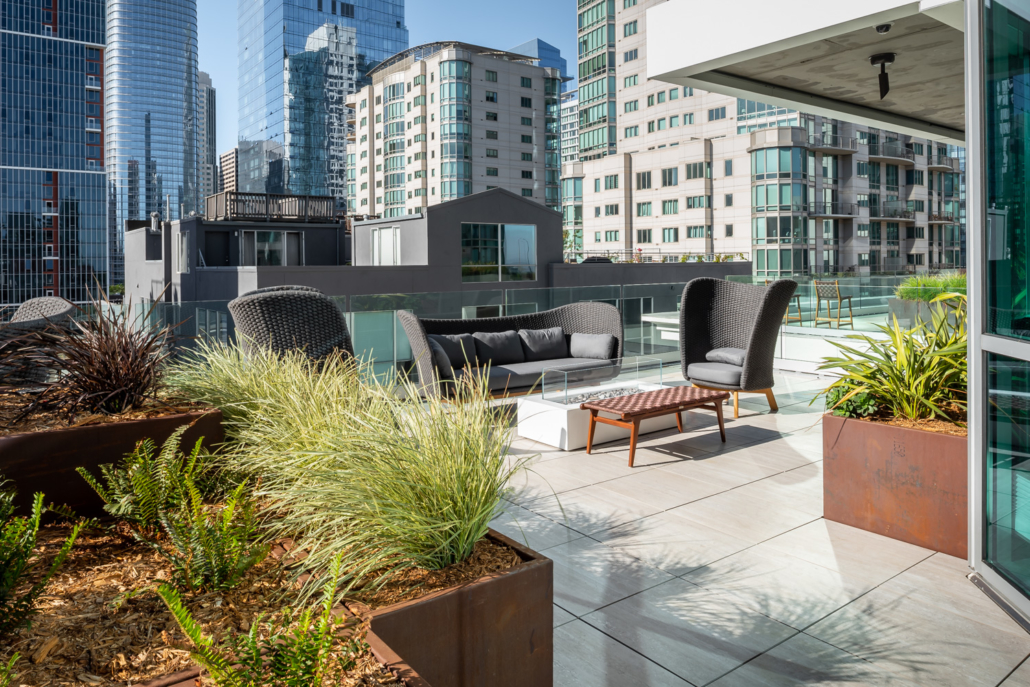 Modera | Rincon Hill is an apartment community located within two height/bulk zones in San Francisco’s Rincon Hill neighborhood. This project has a 14-story tower at First Street, with a stepped 5- to 7-story podium fronting Lansing, Harrison, and First Streets. The base element has projecting bay windows and private stoops to further scale the building to blend in with local traditional residential architecture.