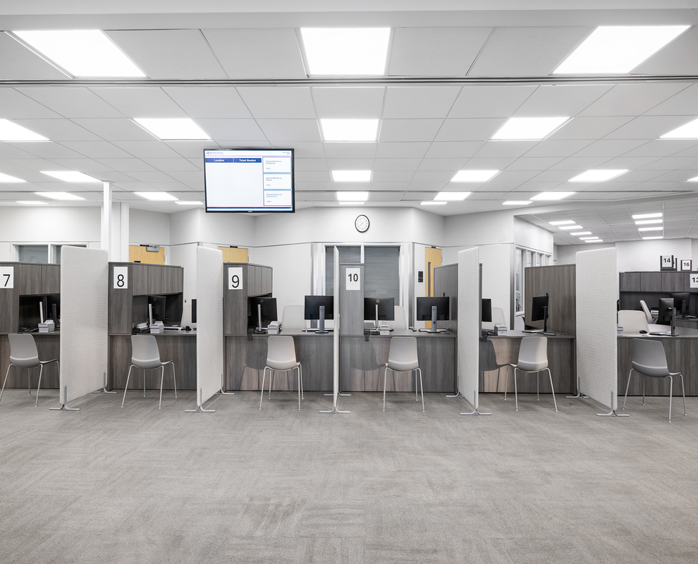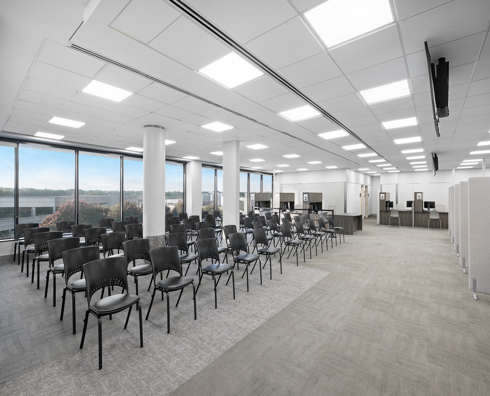 integrating fingerprinting and card printing equipment, transportation, terminal, enhanced electrical and data infrastructure, temporary renovation of a 5,500-square-foot existing space