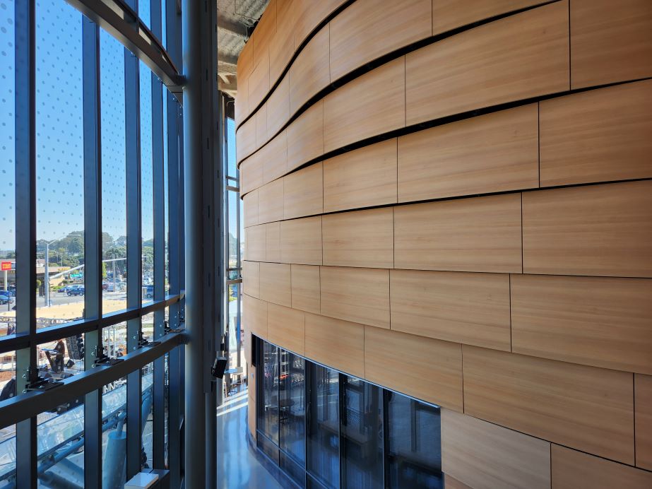 All portions of the building include enhanced internet capabilities for public use and opportunities to utilize state-of-the-art electronic technologies. Driven by performance, the building enclosure utilizes a delicate ceramic frit pattern that responds to varied solar heat gain and interior viewpoints. The visual pattern was produced using climate data and site orientation. The program distribution formed a parametric data set distributing 500,000 ceramic frit dots around the building. In addition to overall preconstruction and construction services, Swinerton self-performed structural concrete, drywall, and doors, frames, and hardware.