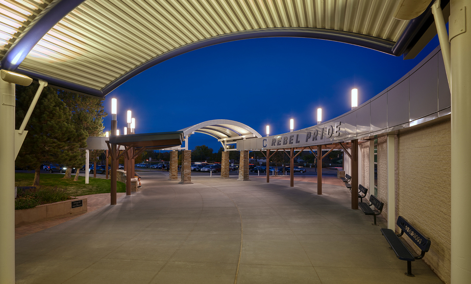 Phase 3 consisted of the demolition and construction of a new large canopy at the school’s main entrance. The canopy provides shade for seating and socializing. Enhancements were also made to the front office and a new secured vestibule was added to provide state-of-the-art monitoring capabilities for the office staff and school security.