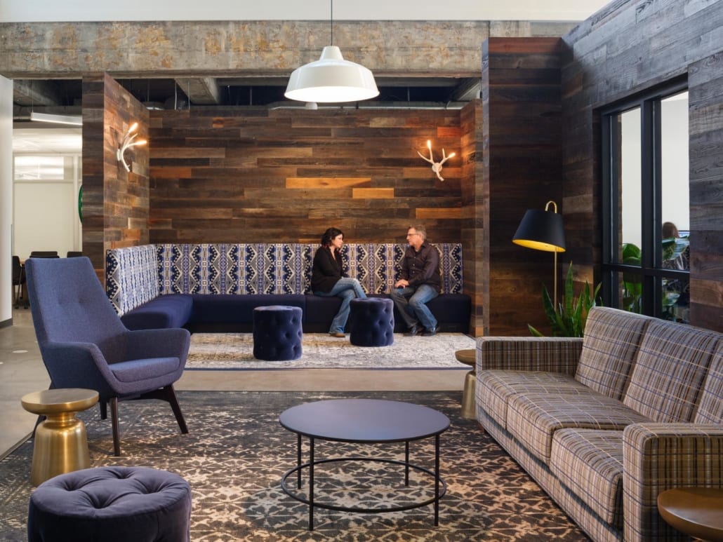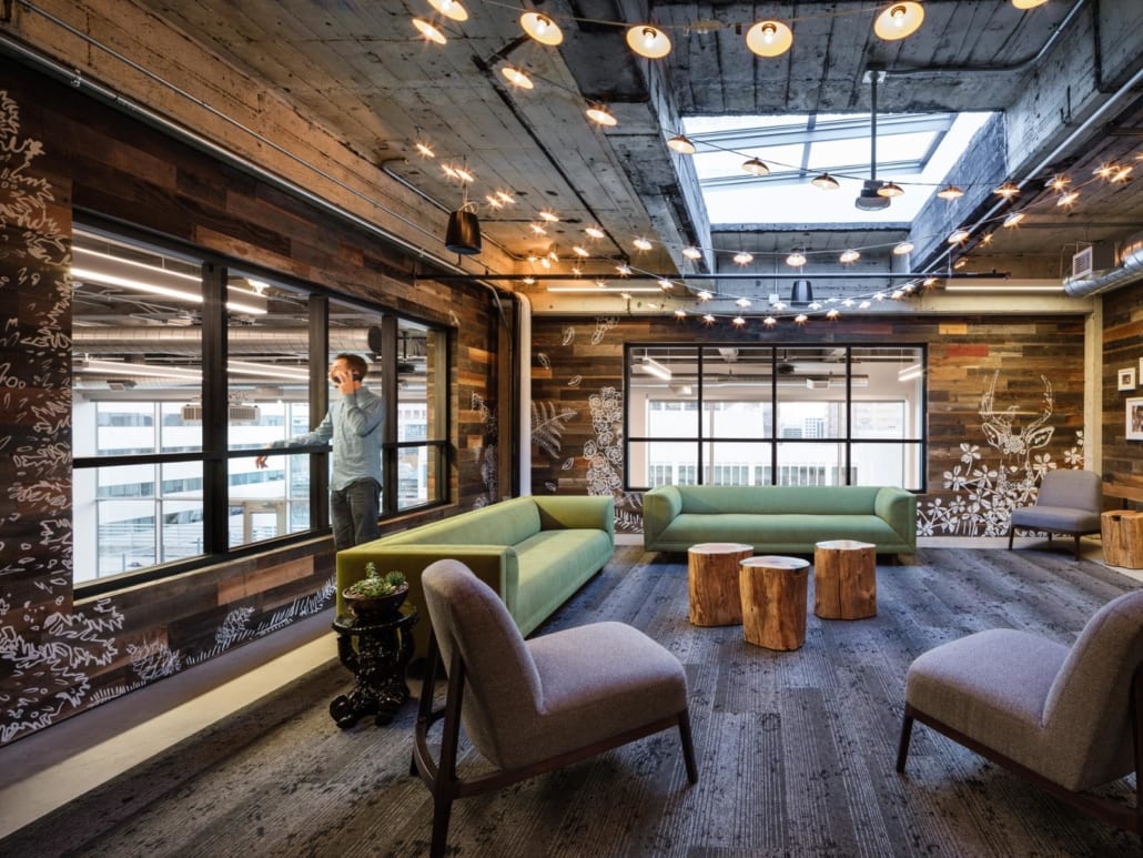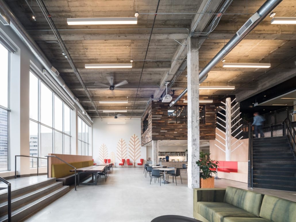 Multi-floor tenant build-out, tree house meeting room, large employee gathering area, data center