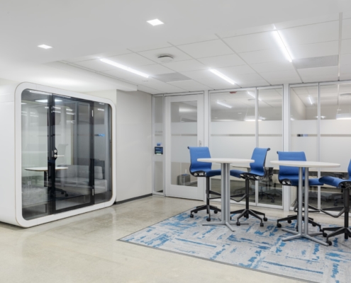 A LEED Certified project, an existing 90,000-square-foot warehouse was renovated into a variety of spaces, including labs/testing, research and development, offices, conference rooms, break rooms, locker rooms/showers, restrooms, and warehouse racking/storage. Space included 4,500 square feet of organic and inorganic lab areas with raised floors, five different kinds of lab gases, and multiple fume hoods. A new stairwell was built, along with an exterior lobby storefront upgrade.