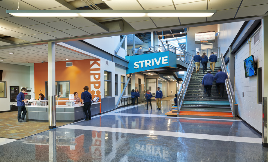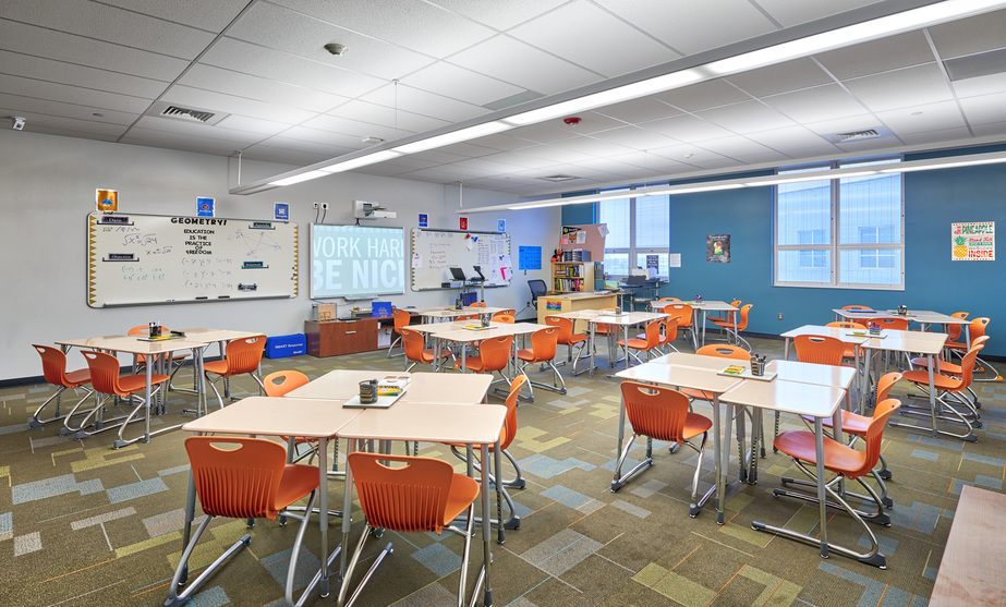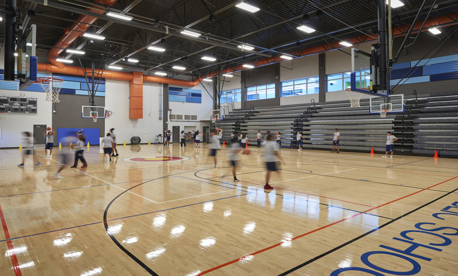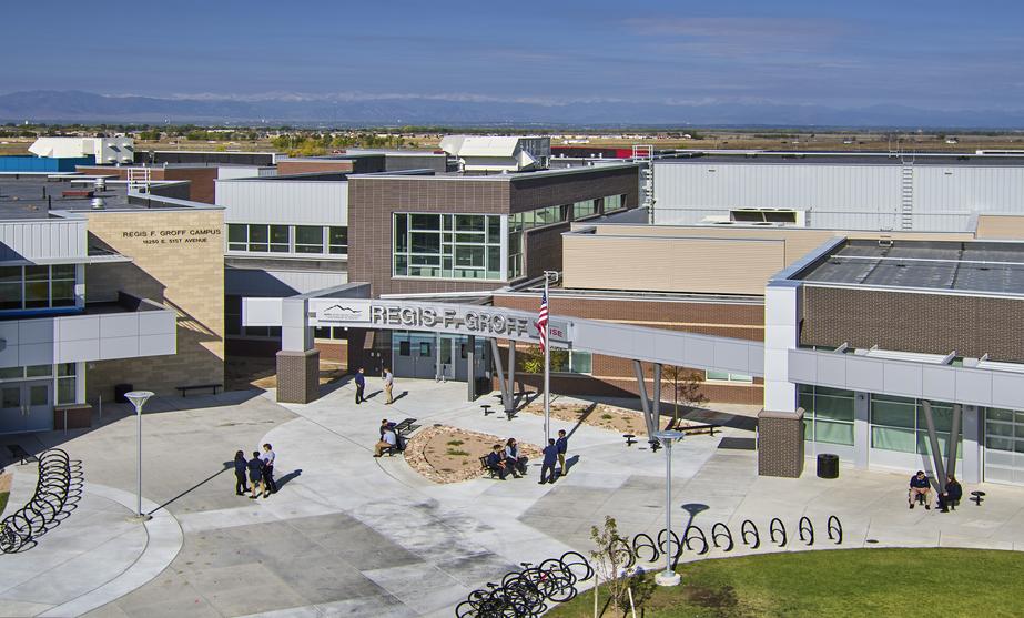 DPS awarded Phase Two of the Regis F. Groff Campus to the Swinerton-Eidos team due to their successful delivery of Phase One (KIPP) that completed 22 days early with zero added costs. The Swinerton-Eidos team continued their partnership with DPS on the second phase known as Strive Prep Rise High School. Phase two scope of work included a 73,000-square-foot addition that was also delivered utilizing the design-build method. The addition includes two, two-story classroom wings, a two-story community/administrative wing, and a 10,000-square-foot-performance/lecture hall that was tied into the existing Phase 1 building (KIPP) while it was operational. All work was completed on a tight site, occupied campus and was adjacent to another DPS active campus Evie Garrett Dennis Campus. Additional work included a sizable site work package included the civil infrastructure leading to the campus including the construction of new roads and utilities to access and supply the property. Swinerton completed Phase II design and construction in 13 months; one month early and under budget.