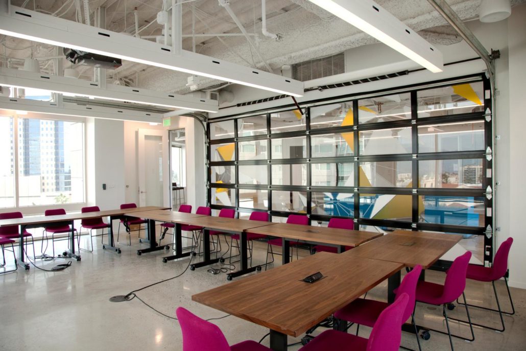 Office, Collaborative Space, Benetti Moss Wall, Contemporary Wall Mural, Live Edge Wood Countertops, Wood Trellis