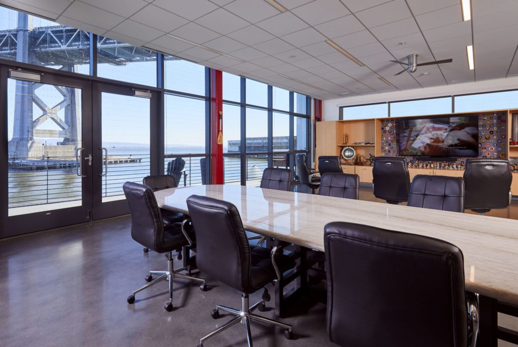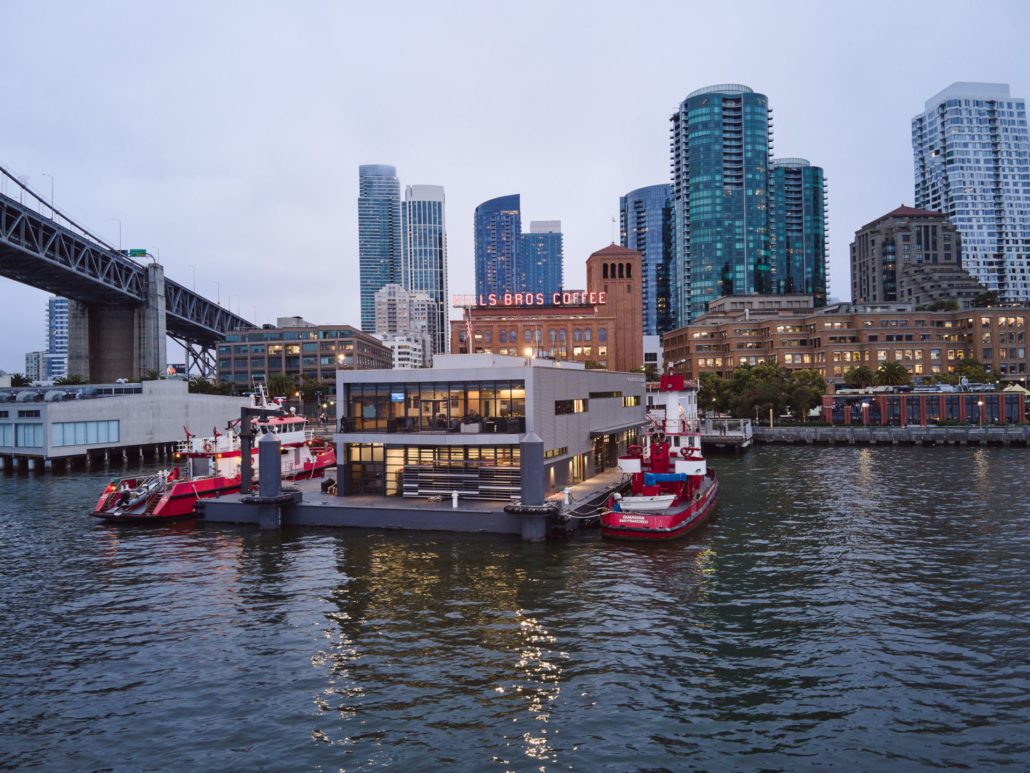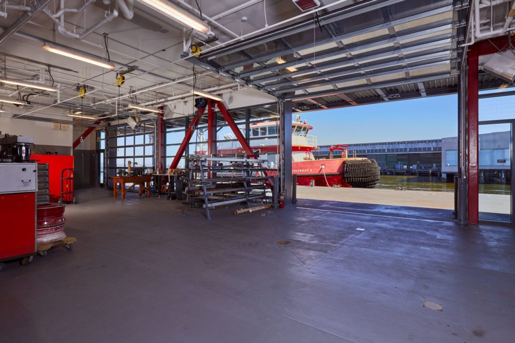 This new maritime disaster operations center was built atop a steel floating pier anchored in place by four guide piles engineered to withstand the long-term effects of sea-level rise and be relatively impervious to earthquakes. This design allows the new station to rise and fall with the natural tide of the San Francisco Bay and projected sea-level rise. Three fire suppression boats, a dive boat, and various marine rescue craft are moored there.