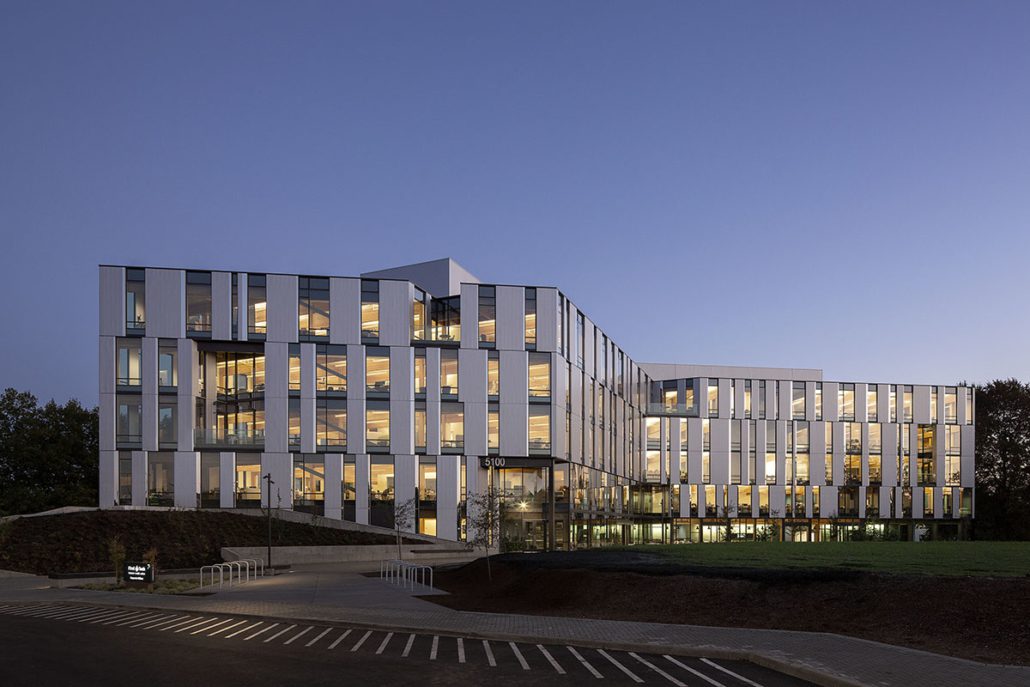 The 156,000-square-foot campus development project included preconstruction and construction services for a five-story, Class A, and LEED Gold office building constructed with mass timber. Swinerton self-performed the BIM model, procurement, and erection of the mass timber structural frame, which consisted of Cross Laminated Timber (CLT) on glulam post and beam.