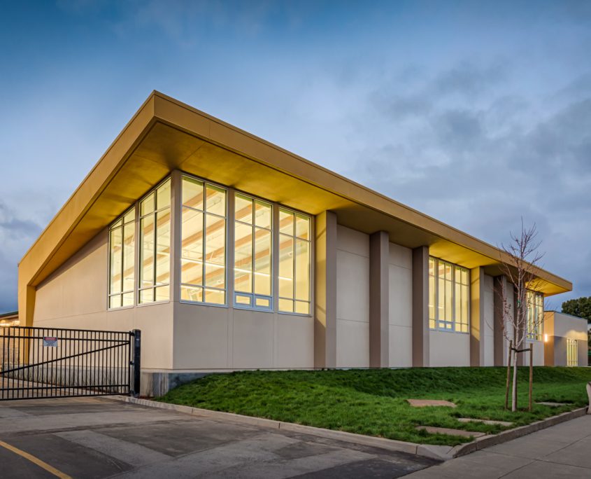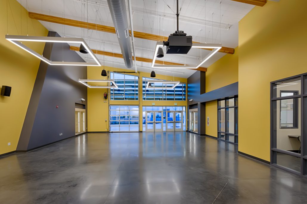 This?lease-leaseback project consisted of new portable classroom buildings and the replacement of an?existing arts and auto shop building with a new one-story academic building. The new building was designed?for creativity, collaboration, and interdisciplinary learning. It consists of 24,000 square feet and includes five?classrooms/computer labs, four art classrooms, a maker space/shop, a central common space referred to as?the “Innovation Hub,” and support spaces such as restrooms and conference rooms. The areas surrounding the?building were redeveloped with new site work, paving, and landscape connecting to the existing campus.