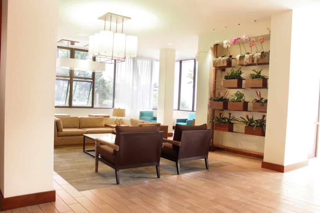 The Hyatt Place Waikiki Beach is the biggest development among Hyatt’s stylish boutique line of hotels, and is the first Hyatt Place “Gen2” in the State of Hawaii and the world. Previously known as the Ocean Resort, the design team regionalized the “Gen2” modern design to embrace the Hawaiian urban lifestyle. The extensive renovation/ make-over included a complete gutting and renovation of all public spaces, Guestroom towers, addition of ADA units, new systems and finishes, new MEP installations, modernization of the elevators, landscape improvements, installation of a new grease trap and other updates to the utilities.