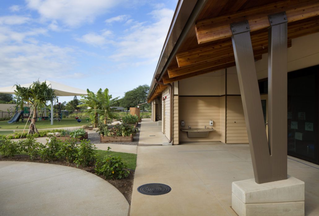 What was once an empty field of rocks and dry kiawe wood, is now a sanctuary of early education and family resources for the surrounding communities of the Waianae Coast. The Kamehameha Schools Community Learning Center at Ma‘ili consists of a ground-up construction totaling about 10 acres of extensive sitework and the erection of 57,509 SF of mix-use buildings, which included an Infant Toddler Center, 3 Preschool Buildings, and the Kauahale building which housed office administration and operations for the facility. The Kamehameha Community Learning Center provides an invaluable resource of early education and childcare, essentially creating 185 additional preschool seats and expanding the capacity from Kahe Point to Ka’ena Point by 20%, which will continue to benefit the people and families of the Waianae Coast for many years to come.