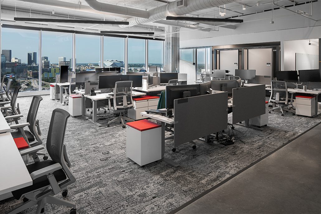 Swinerton partnered with Cooper Carry as the architect?to deliver?the first-generation tenant fit-out of the new 20-story CODA Building.?The scope included installation of a new 30,000 cubic feet per minute (CFM) air handling unit, enlighted lighting control system, sealed concrete floors, open ceiling concept with tectum ceiling baffles, wood wall covering, and a comprehensive signage and graphics package. The new space provides high-end amenities including?IDF rooms, large meeting rooms with views of the downtown Atlanta skyline and Georgia Tech Campus, community flex space with seating for over 70 people, a catering pantry, game room, wellness room, coffee bars, and innovative team pods to maximize employee collaboration.