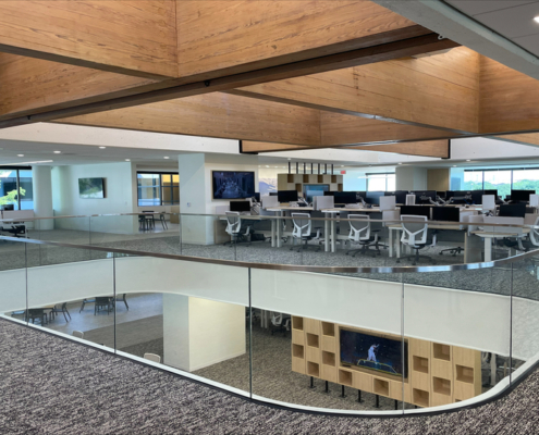Swinerton built out this mission critical customer service center for a luxury retail client. This facility will serve as a regional office for employees and includes workspace, training labs, collaboration areas, a product repair workshop, cafe and dining areas, and shared support services.