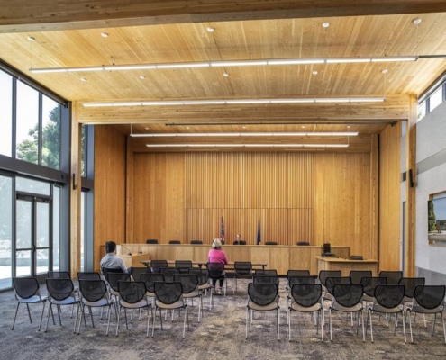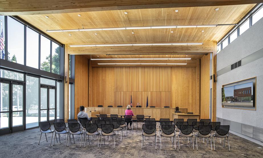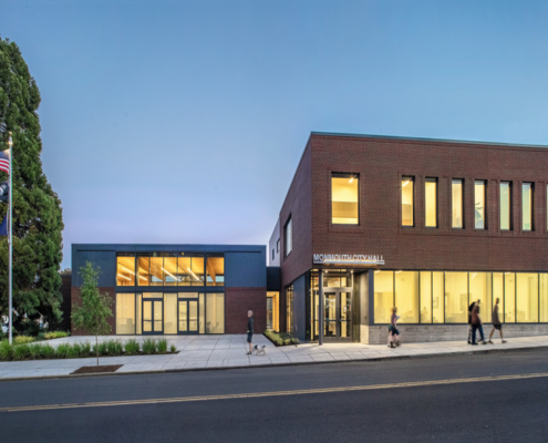 Swinerton provided general contracting services for the construction of the Monmouth City Hall. The new two-story mass timber building provides a new home for the city’s finance, building, community development, and administration departments. The City Hall features office space and new facilities for current staff, with room to expand for future use as the city continues to grow. A prominent component of the building is the court chamber featuring ballistic walls, which was designed for council meetings, court hearings, and public meetings.