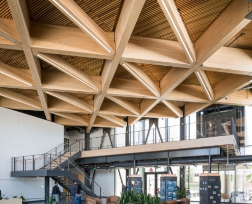 Office Building, Hybrid Mass Timber/Structural Steel, Lobby, Conference And Board Rooms, Offices, New Pedestrian Bridge