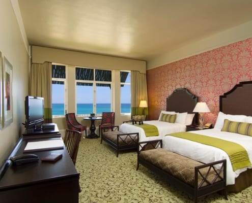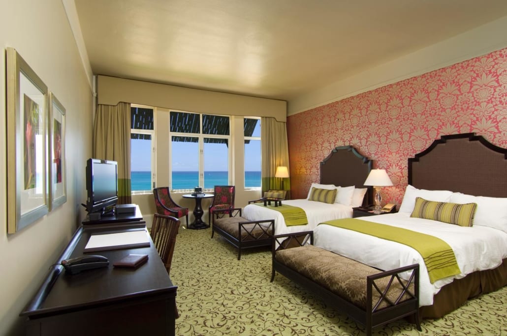 The renovation of the guestrooms and suite included 309typical rooms, 39 suites including the Prestige Suites – the Kamehameha Suite, the Presidential Suite and the Governor’s Suite which offer opulent and distinguished accommodations with grand amenities along with spectacular views of Diamond Head and the sparkling Pacific Ocean. The entrance to each guestrooms and suites retain their original koa wood doors.