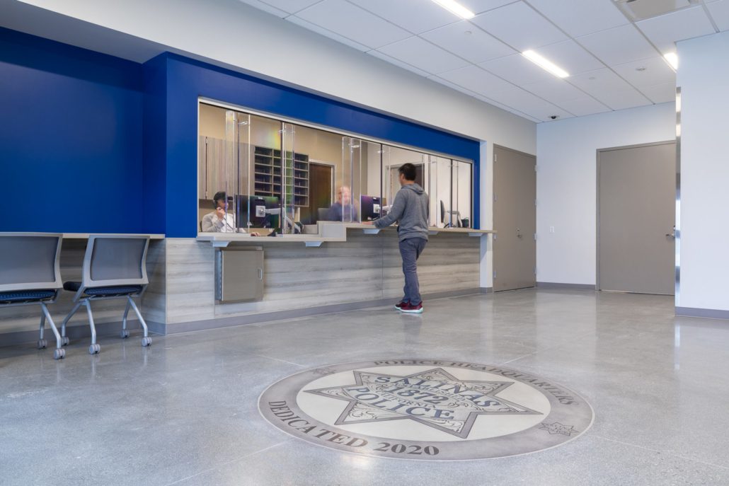 The utility building houses the Police Department’s support services including evidence intake and storage, forensic vehicle investigation, forensic laboratory, K-9, a firearms proficiency range, and other warehouse items. The 8.5- acre site includes 200 – 250 secure, at-grade parking spaces along with 20 public parking spaces and an outdoor community plaza.