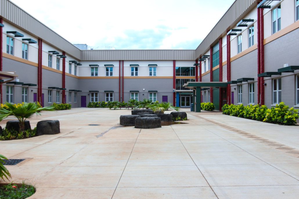 The school is now modernized with new amenities for the students, including 63 new classrooms, a student support center, two computer labs, an audio/ video room, a covered play yard, cafeteria, and administrative offices, along with new entrance driveways and more than 170 parking stalls. The project was funded by a grant from the Department of Defense Office of Economic Adjustment for approximately $70 million. State funding provided nearly $20 million for the remaining 20% of the total project cost. Total of new building construction around 114,594-square-feet.