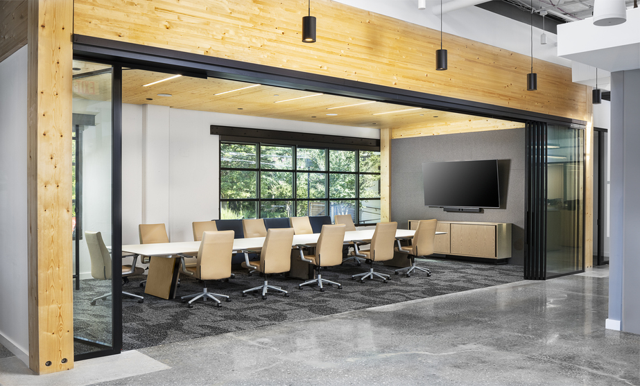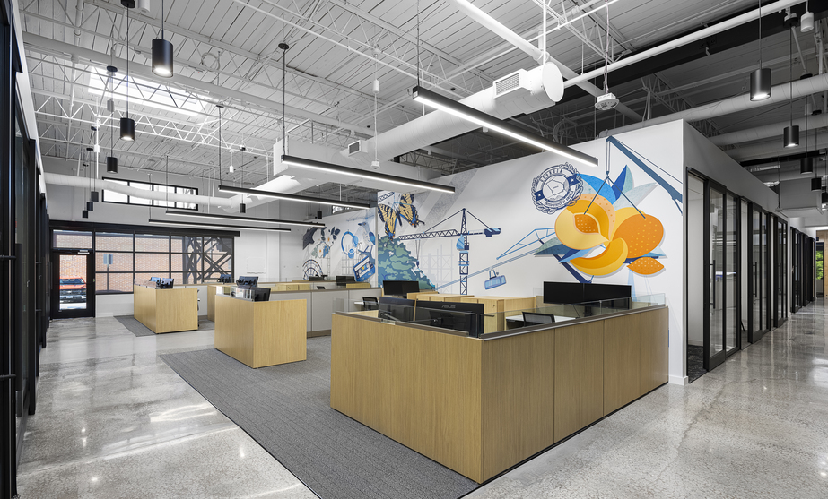 Swinerton provided general contracting services for the construction of the firm’s new Atlanta office. Located in the city’s popular and award-winning adaptive reuse project Armour Yards, the 12,500-square-foot office features 22 private offices, 30 workstations, two flex rooms, two meeting rooms and a preconstruction room. Employee amenities include a fitness studio, wellness room and a working lounge with overhead doors to the exterior connecting to Atlanta’s famed Beltline. Natural light, biophilic elements and custom art installations complete the fully customized environment designed by MurphyMeyers.?Approximately 550 square feet of European spruce timber was sourced and fabricated by Swinerton’s affiliate company and partner Timberlab at its new Greenville, S.C. facility. With a lower carbon footprint than other materials, the timber is featured in the conference room and integrated into various desk facades throughout the office.