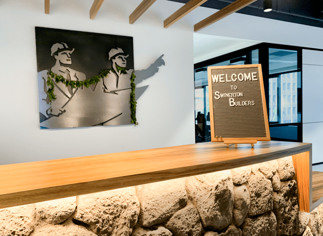 In early 2021, Swinerton Hawaii moved to a new office location in Downtown Honolulu. A design-build project, we utilized our own internal work forces to personally build out the existing 11,000-square-foot office space. It provides additional square footage for enhanced amenities, including multiple collaboration rooms and virtual conferencing rooms; a creative, open space work environment; and an inviting social gathering space. Our new offices also provide additional workspace for the continued expansion of our Special Projects and Self-Perform teams. To showcase their capabilities, we utilized their combined strength and expertise to meet our vision. They provided opportunities for constructability improvements, improved the quality of installation, helped control the schedule, and decreased costs
