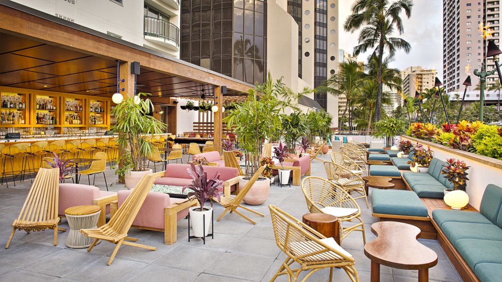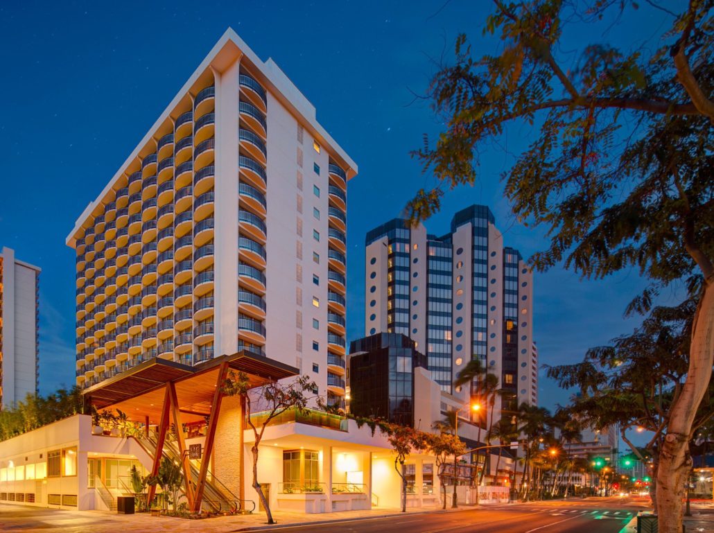 The scope of work involved the complete renovation and modernization of a 16-story, 250-room hotel with new guestroom, retail areas. The street level includes more than 10,000-square-foot of retail space, additional back of house/service areas and a 500-squarefoot lanai. On the 2nd floor lobby level a pool deck, fitness area, spa rooms, kitchen and offices, dining area, and a lounge/bar are featured. Through the design process furnishings and finishes were carefully selected to create a strong sense of rustic Hawaiian luxury, while keeping the hotel stylish and sophisticated. A 20,500-square-foot parking garage for hotel guests and shoppers is located just below street level.