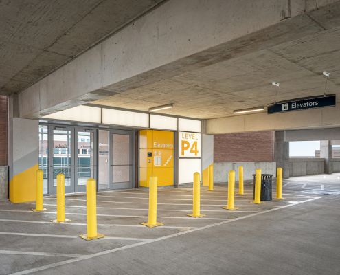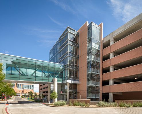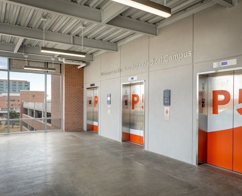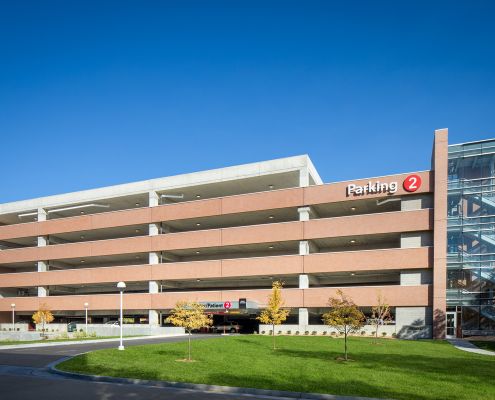 Swinerton provided preconstruction and general contracting services for the UCHealth Anschutz Campus Parking Structure, located directly across from the Anschutz Outpatient Pavilion (AOP). The six-story, above-grade parking garage totals 422,135 square feet with two stair towers and an elevator and stair core. The garage adds parking for 1,310 vehicles, including 132 ADA-compliant spaces. An elevated pedestrian bridge connects the garage and hospital, which was assembled off site, shipped to the garage, and installed together on site. Swinerton self-performed concrete and drywall scopes of work.