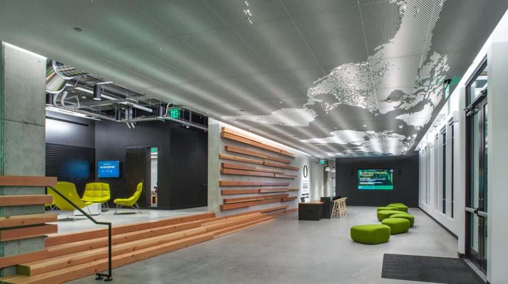 Graduate Level Learning Spaces, Exposed Ceilings, Polished Concrete Floors, Rolling Barn Doors, Back Painted Glass, Lumber Feature Wall, Urban Location