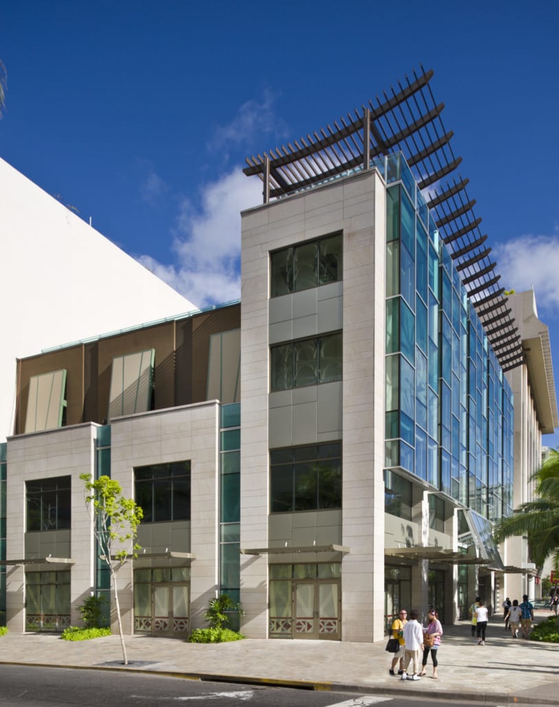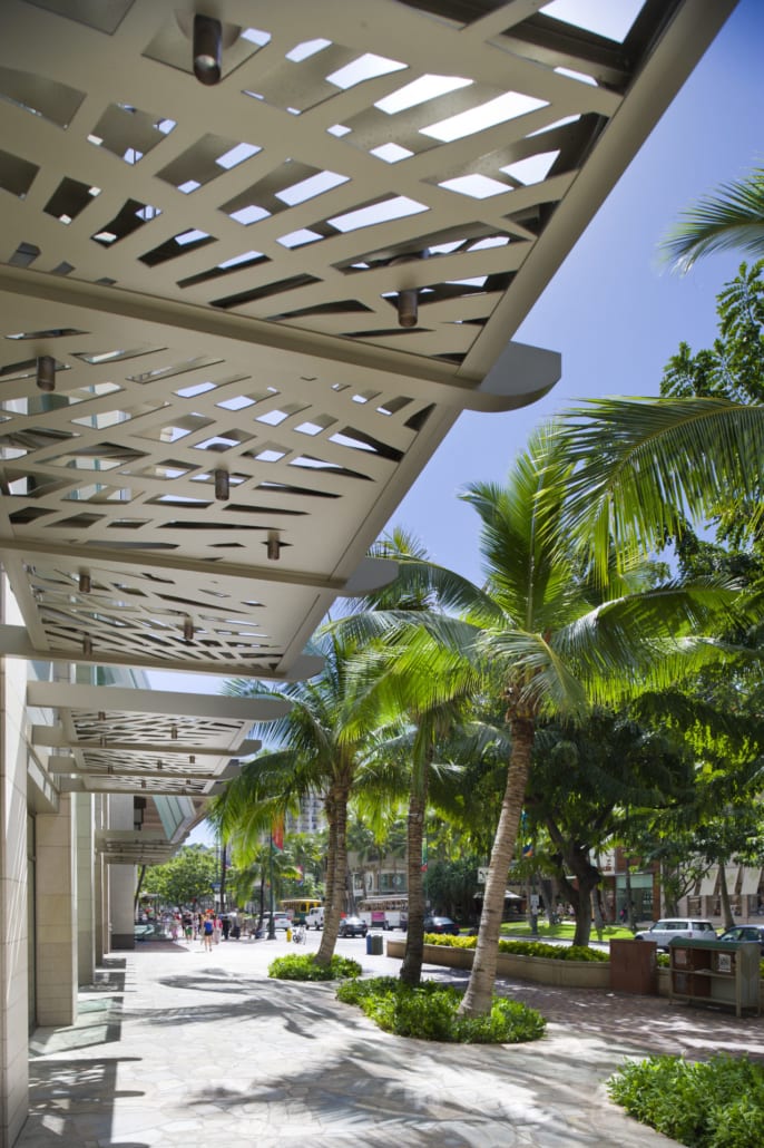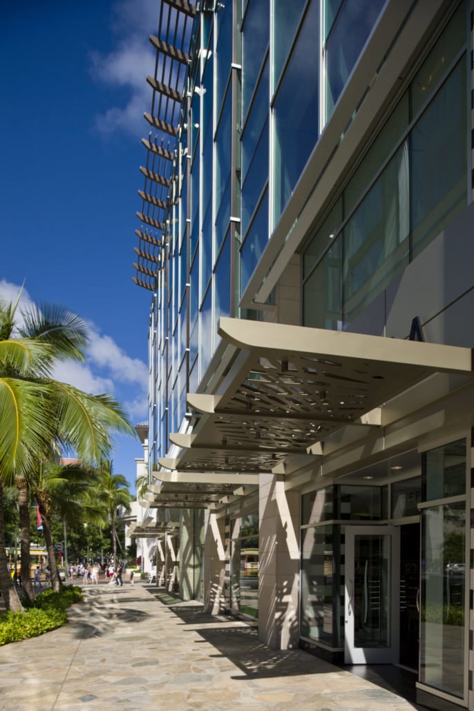A 60-foot high three-story building, set 20 feet back from Kalakaua Avenue and 15 feet back from Royal Hawaiian Avenue, with space for three tenants on the ground floor. The first floor would be 10,350-square-feet with a 16-foot high ceiling. The second floor also would be 10,350 square feet but with a 13.5 foot high ceiling. The third floor would be 8,680 square feet with a 29.5 foot high ceiling.