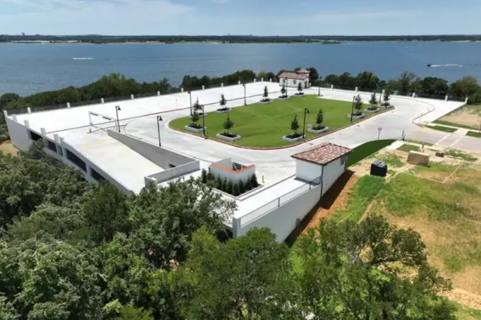 The plaza, located on a 2.5-acre promontory at Flower Mound’s southern tip, offers 360-degree lake views and includes a two-level underground parking garage with 378 spaces. Developers envision the site as a future hub for restaurants, a wedding venue, and eventually a 12-story Marriott Autograph Collection hotel.