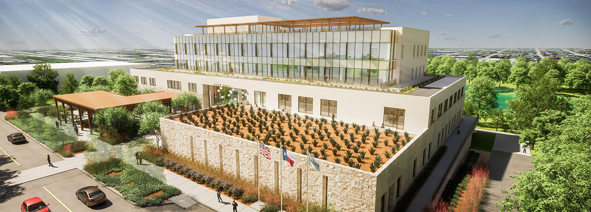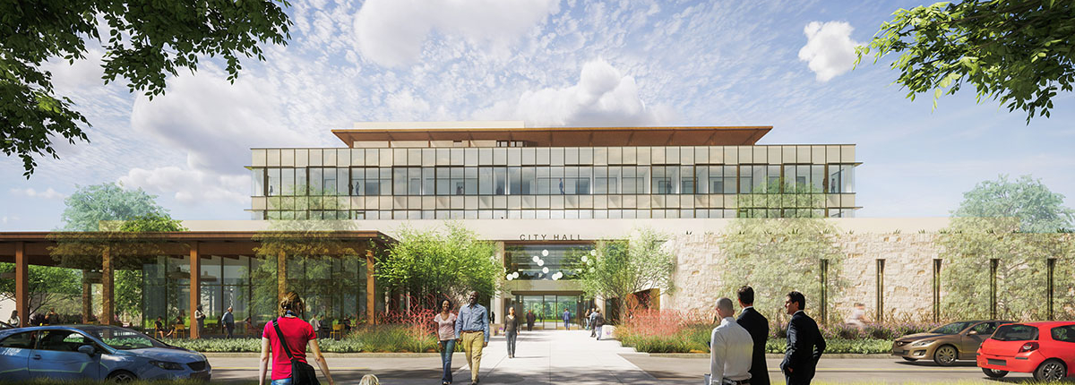 A new City Hall and Recreation Center will activate Pflugerville city center.
