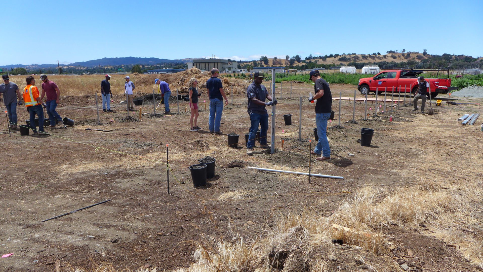 Swinerton’s team helped layout the footprint of the greenhouse, build the frame, and enjoy quality food and time with their project partners and the friendly folks at CoCo farms.