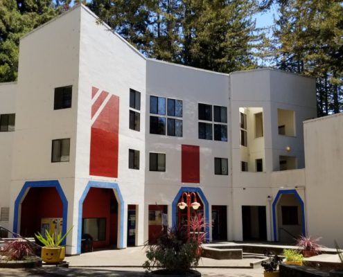 The project’s overall intent was to renew the College as a vital living/learning community, expand on-campus student housing capacity, and address campus wide academic priorities identi?ed by UC Santa Cruz. The University also wished to honor the legacy of architect Charles Moore, who served as the original architect for the Kresge College Campus when it opened in 1971. The design of the new buildings re?ect Moore’s integration of asymmetrical architecture, which is typi?ed by the use of contoured angles and curves. This approach is exempli?ed by the smooth curvatures of nearly all sides of the new Academic Building, which utilizes a curved cross-laminated timber (CLT) roof diaphragm. The buildings also showcase his love for bright color palettes, which are reflected on both the exterior and the interior of each building, along with his innovative approach to lines of sight. In doing so, the new buildings complement the existing structures and sustain the spirit of Moore’s original design.